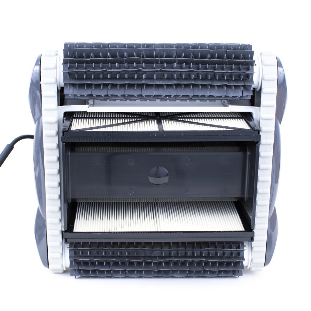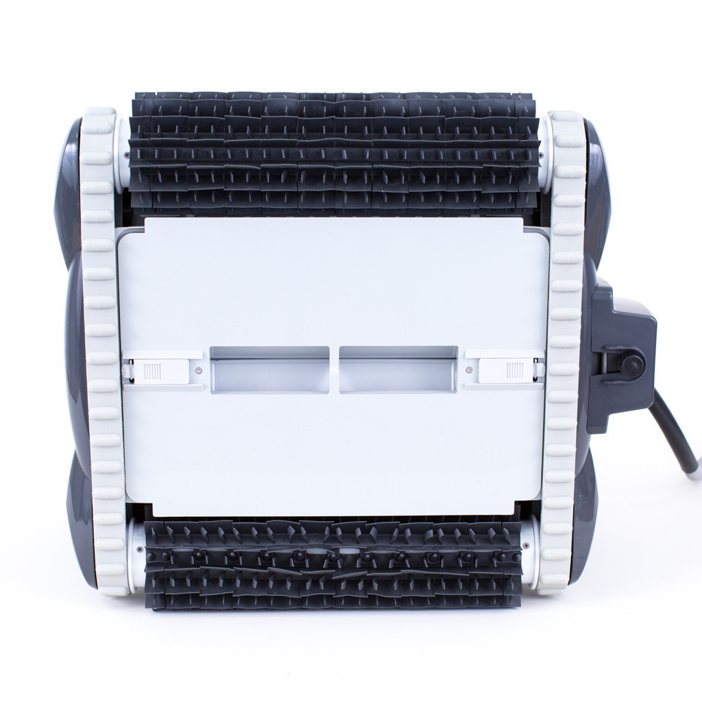 Основу конструкции пылесоса Hayward Tiger Shark 2 составляют водонепроницаемый мощный двигатель с насосом. Двигатель имеет встроенную защиту. Датчик Out-water препятствует работе вне воды, что дополнительно повышает защиту от перегрузки. Управляемый заданной программой, пылесос двигается по дну и бортам, одновременно очищая поверхность и фильтруя воду бассейна. Расчетная скорость очистки - 5 кв.м./мин. Благодаря мощной тяге, пылесос преодолевает выступы, карабкается по стенам и очищает зону над ватерлинией.