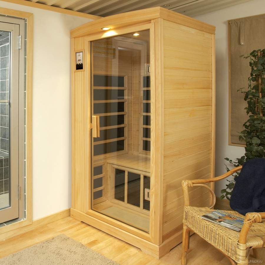 ИК сауна уже оснащена цельностеклянной дверью, цветотерапией, музыкальной системой (MP3, CD).
