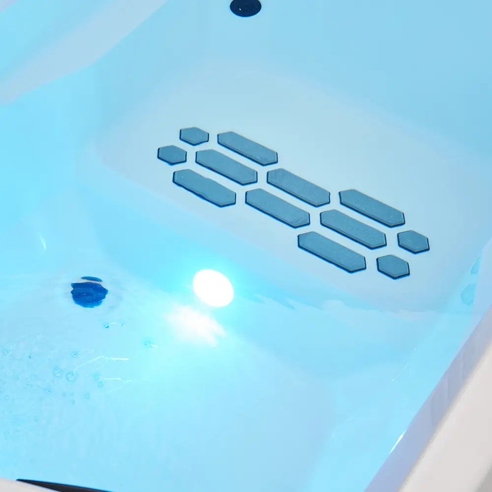 Внешнее отображение температуры позволяет точно контролировать параметры воды перед началом сеанса. Встроенные форсунки (3 шт.) создают циркуляцию воды, усиливая охлаждающий эффект, а LED‑подсветка добавляет атмосферности. Для безопасности и удобства эксплуатации предусмотрены система перелива и надежный дренаж.​