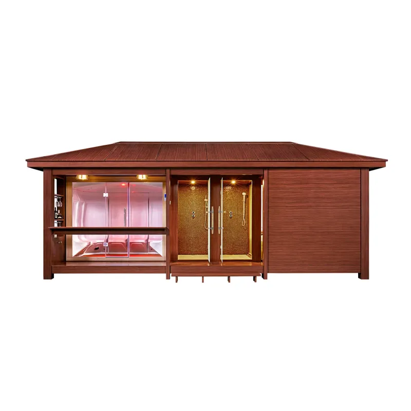 Газебо MEXDA WS-LT13 предлагает открытые комплексные помещение, которое включает сауну и душевую кабину.