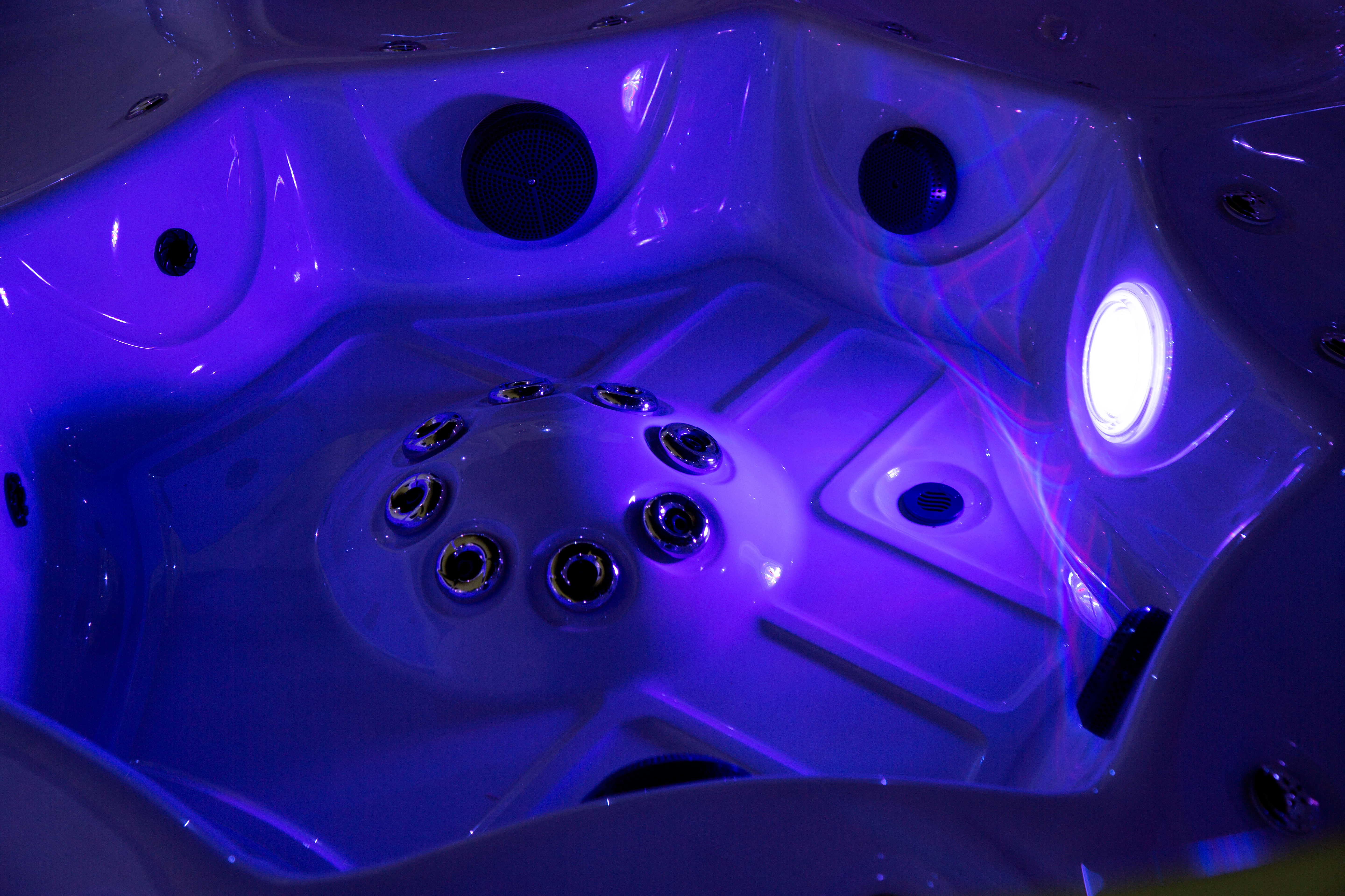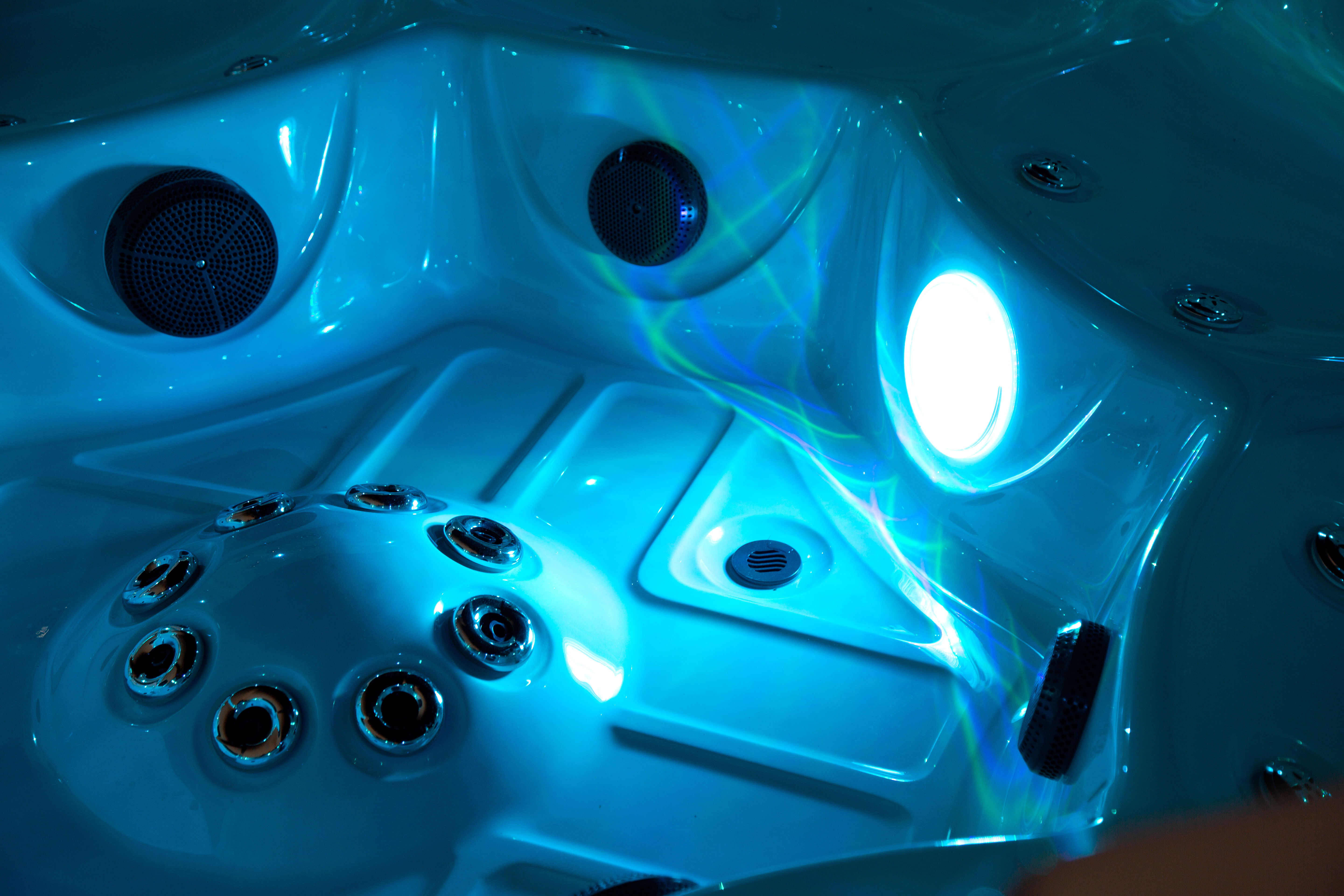 Хорошо продуманная система освещения превращает вечерний отдых в эстетическое наслаждение. Многоцветная подводная подсветка Northern Lights, дополненная изящной подсветкой ватерлинии, создает сложную игру света на воде, способствующую глубокой релаксации и визуальной гармонии.