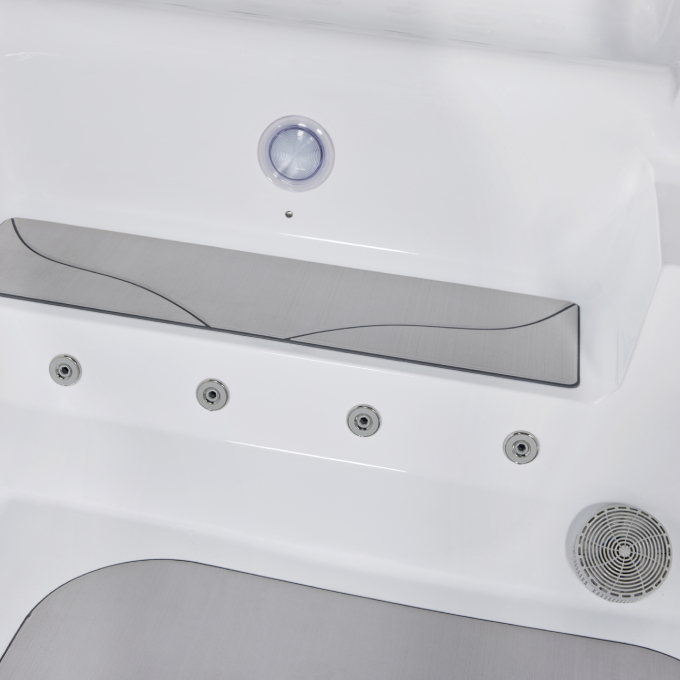 - Габариты: 5500 × 2300 × 1350 мм (просторная зона для плавания)